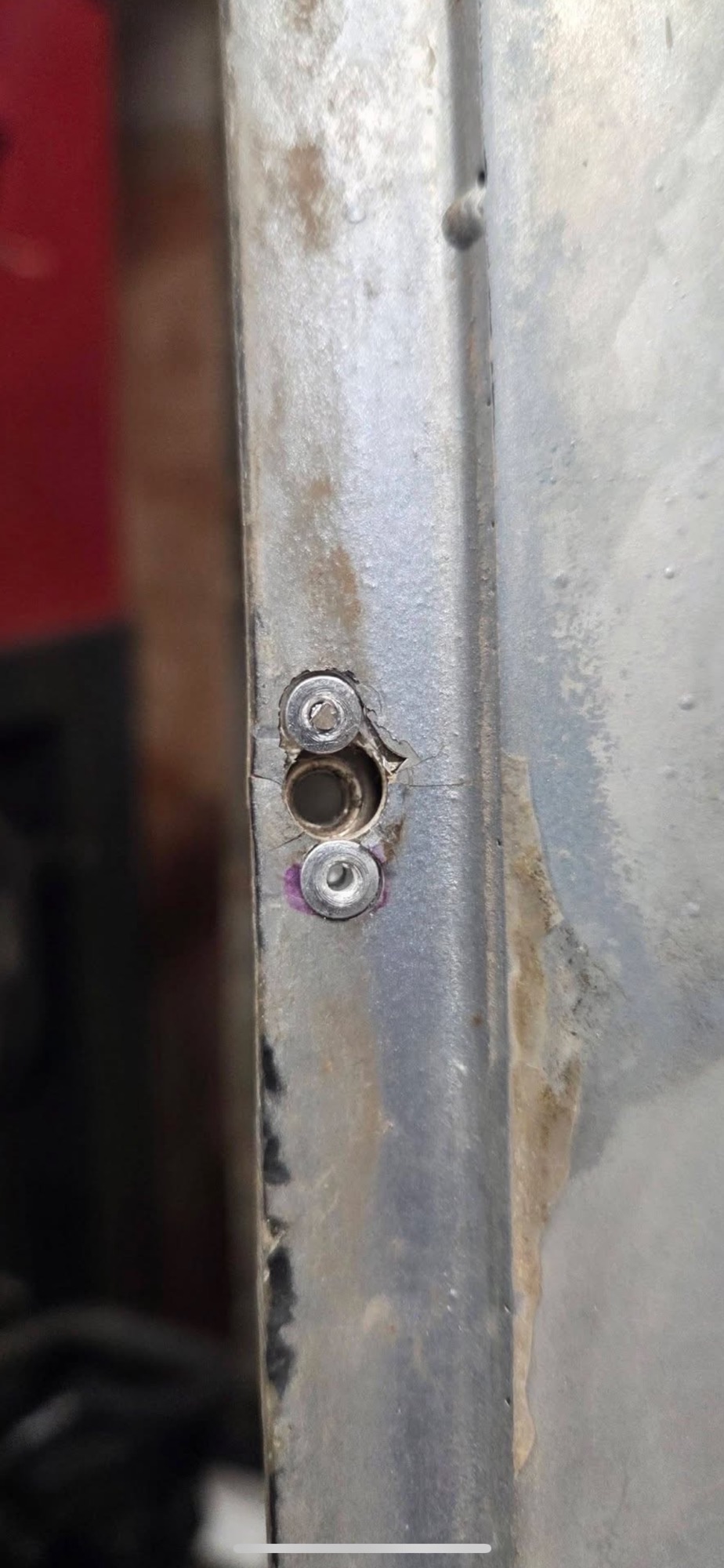 To install, I put the nut plate (flat side on the outside of the hole), screwed the socket head through from the back, letting the taper align the hole, then drilled the nutplate holes. Took it apart, put the nutplate on the backside of the hole and riveted them in. It takes a bit of finesse to get the countersink deep enough with the drill but if you over do it, it's not a big deal. I made a few samples to practice.